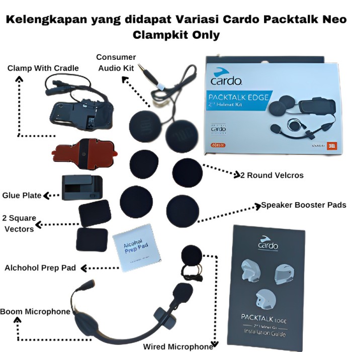 Rp2.706.000 – Rp13.772.000Rentang harga: Rp2.706.000 hingga Rp13.772.000Intercom Cardo Packtalk Edge Bluetooth Helmet Communication *Setiap pembelian Intercom Helm Cardo Packtalk akan mendapatkan merchandise menarik dari Digioto !!! Ayo segera beli dan dapatkan hadiahnyaa !!! Persediaan terbatasss (tidak berlaku untuk pembelian Clampkit Only) Kelengkapan Yang di dapat : – Clampkit Only : Hanya mendapatkan Clampkit Edge saja beserta kelengkapannya (VARIASI INI TIDAK MENDAPAT INTERCOMNYA YAAA) – Single Loose Pack : Mendapatkan Intercom Edge 1pcs beserta kelengkapan nya (tidak termasuk dus kotak/packingan) – Duo : Mendapatkan Intercom Edge 2pcs beserta kelengkapan nya,dus kotak/packingan *Setiap pembelian Cardo Packtalk Neo Single/Duo sudah include Clampkit, tetapi jika ingin membeli Clampkit tambahan silahkan Check Out pada Variant Clampkit Only. Note : Harap memperhatikan variasi yang dipilih sebelum melakukan pemesanan, jika ingin mengetahui denga pasti harga Intercom dapat ditanyakan terlebih dahulu kepada admin GARANSI RESMI PT.PAS Ciri2 produk yg diimport oleh PT.PAS : 1. Di setiap device terdapat hologram PT.PAS (untuk klaim warranty) 2. Di setiap kotak ada kode QR, DePostel PT.PAS 3. Di kotak terdapat stiker “Cardo Gift” (Khusus edisi terbatas untuk PT Edge Single / Duo) Generasi terbaru dari intercom Cardo yang memiliki fitur tahan air serta Sistem Bluetooth 5.2 yang ditingkatkan membawa Edge ke iterasi terbaru, meningkatkan kualitas audio dan menambahkan kemampuan untuk menyambung kembali secara otomatis melalui sistem Live Intercom Cardo dengan pengendara lain hingga jarak 1,6 km (1 mil). Itu sebelum Anda memasuki jaringan mesh perbaikan mandiri Packtalk generasi baru, yang dapat menghubungkan hingga 15 pengendara melalui jarak yang diklaim hingga 8 km (5 mil).