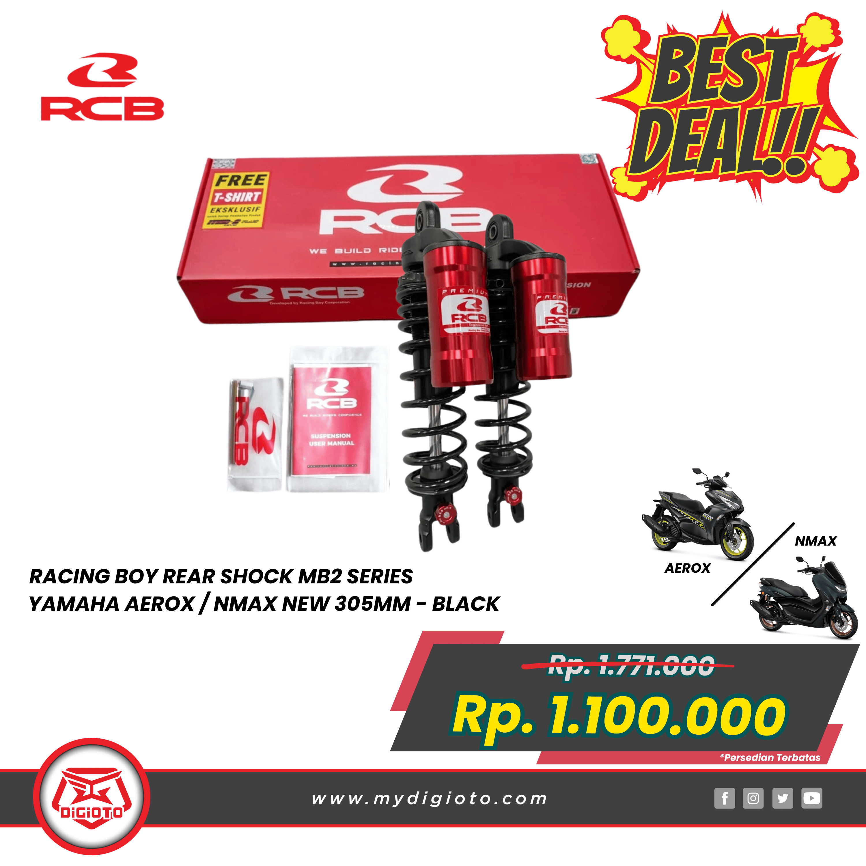 Garage Sale : RCB REAR SHOCK MB2 SERIES YAMAHA AEROX / NMAX NEW 305MM - PREMIUM BLACK