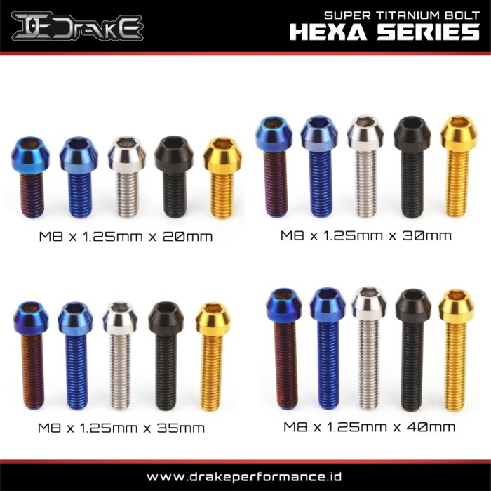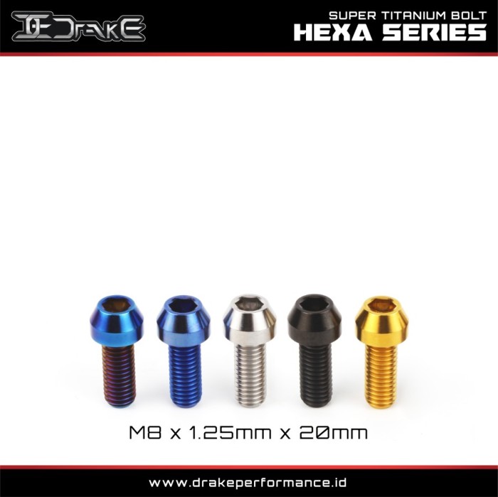 Rp60.000 – Rp80.000Rentang harga: Rp60.000 hingga Rp80.000Drake Baut L Titanium M8 Hexa Series Grade 5 Original – M8x1.25×40
