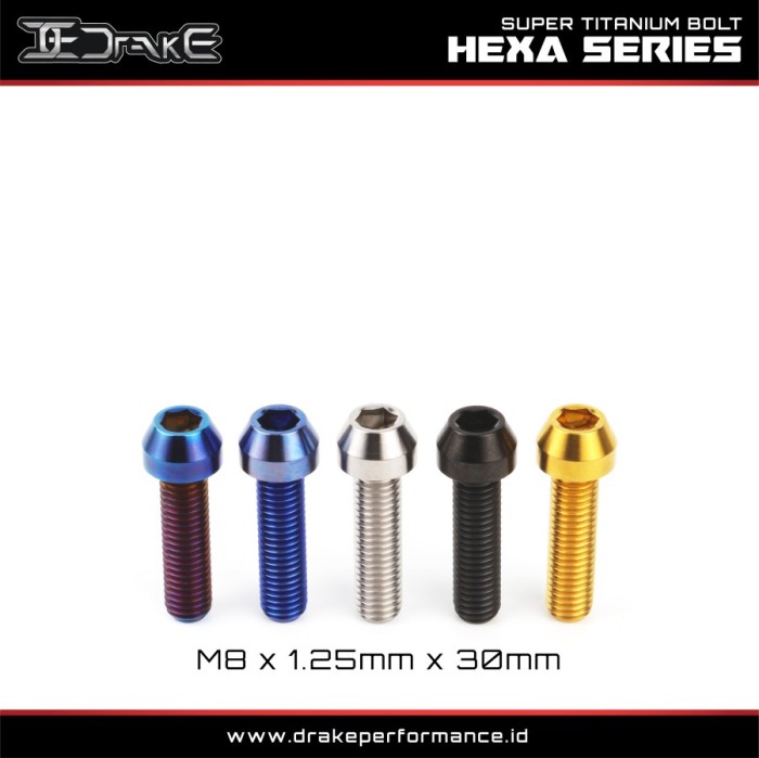 Drake Baut L Titanium M8 Hexa Series Grade 5 Original – M8X1.25X30, Silver