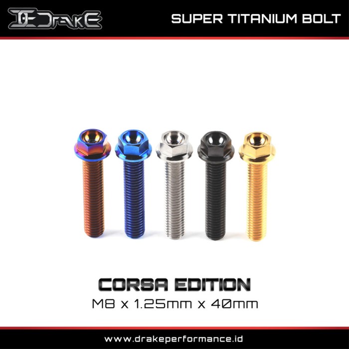 Drake Titanium Baut Corsa Series M8 Universal – M8X1.25X40, Silver