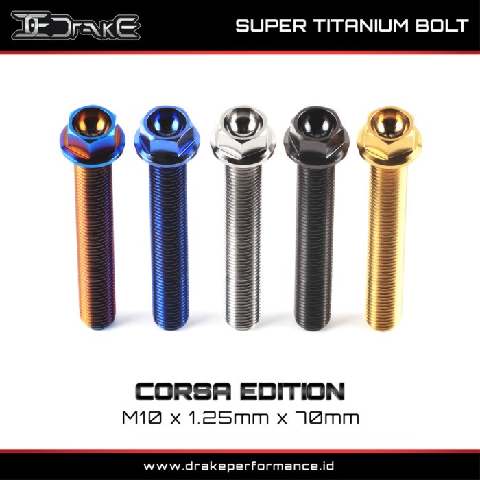 Drake Titanium Baut Corsa Series M10 Universal – M10X1.25X70, Hitam