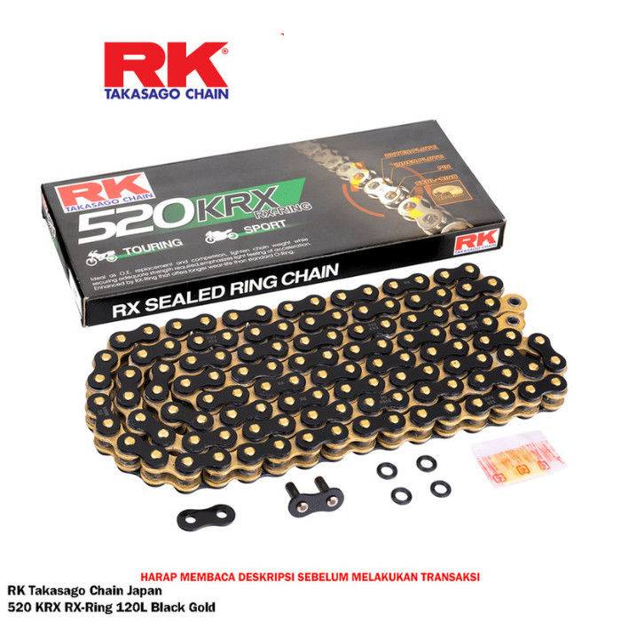 Rantai Motor RK Chain 520-120L KRX RX Ring Black Ninja 250 Z250 MT25
