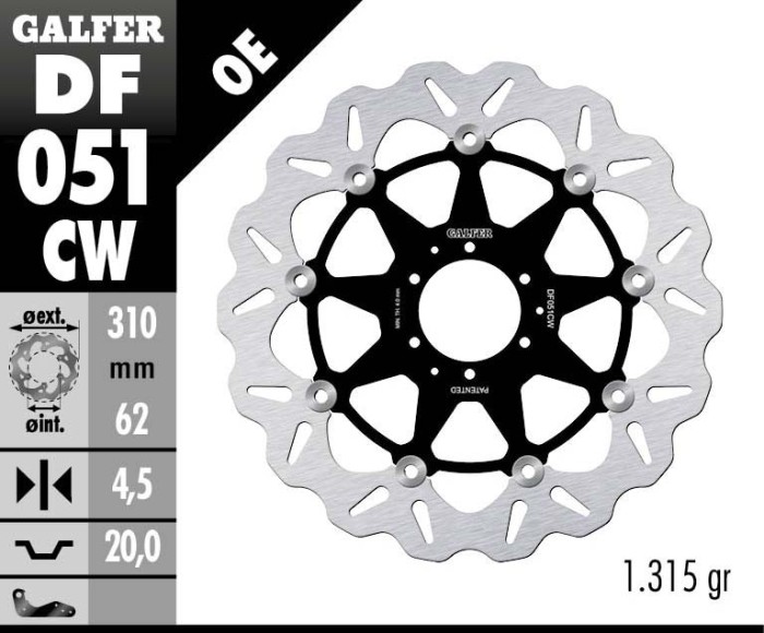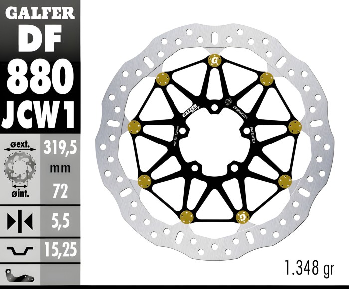 Disc Brake Galfer Floatech Depan Ducati 848/V2 319.5mm Disc Wave