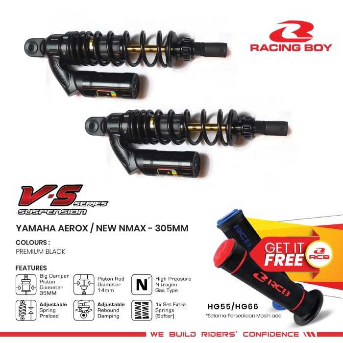 Shock Shockbreaker Racing Boy RCB VS Premium Black Series Yamaha Aerox 305mm